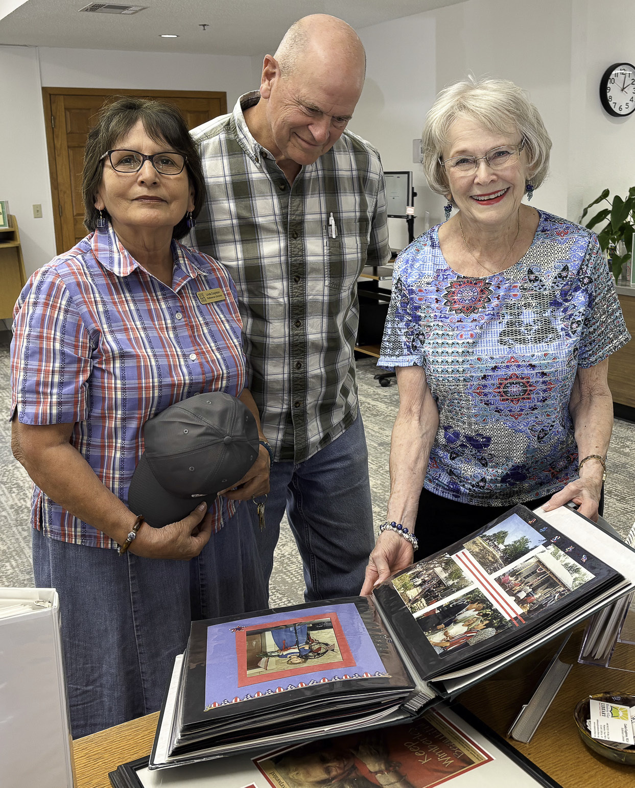 On hand to receive the items were Reference Librarian, Linda Eagleton and Wimberley’s current Mayor, Jim Chiles. Last week Hewlett donated mementos from her term in office that included scrapbooks, photo albums, a replica of the city seal, the first key to the city, her gavel and other items. As visitors browse through the memorabilia, they are invited to write down comments, memories and thoughts about Wimberley’s incorporation that led to the election of it’s first mayor and city council.
