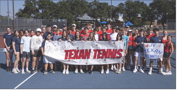 TEXAN VARSITY TENNIS TEAM HONORS JV TEAM BEFORE THE ALAMO HEIGHTS MATCH. PHOTO BY JULIE ALBINI/ALBINI.SMUGMUG.COM