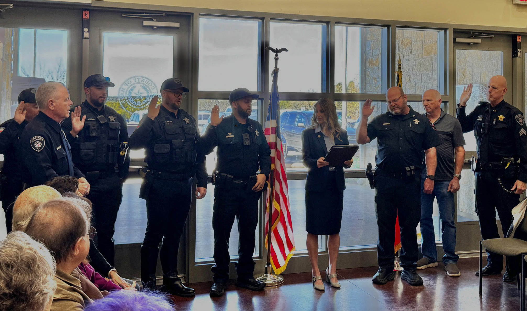 The Hays County Constable Precinct 4 covers the northern quarter of Hays County in the general area of Dripping Springs. Their staffing includes eight full time law enforcement officers, two reserve officers and one justice administrator, which is a civilian position. Staff includes: Dave Graham, Constable 41 years LE; Jimmy Zuehlke, Sergeant, 38 years LE; Charles Williams, Corporal, 39 years LE; Blaine Hamilton, Deputy, 21 years LE; Zach Miller, Deputy, 24 years LE; Juan Zesati, Deputy, 18 years LE; Justin Drake, Deputy, 15 years LE; John Pozuc, Deputy, 10 years LE; Tate Puryear, Reserve Deputy, 30 years LE; Tim Kresta, Reserve Deputy, 31 years LE; Modesta Garza, Justice Administrator, 21 years county employee.