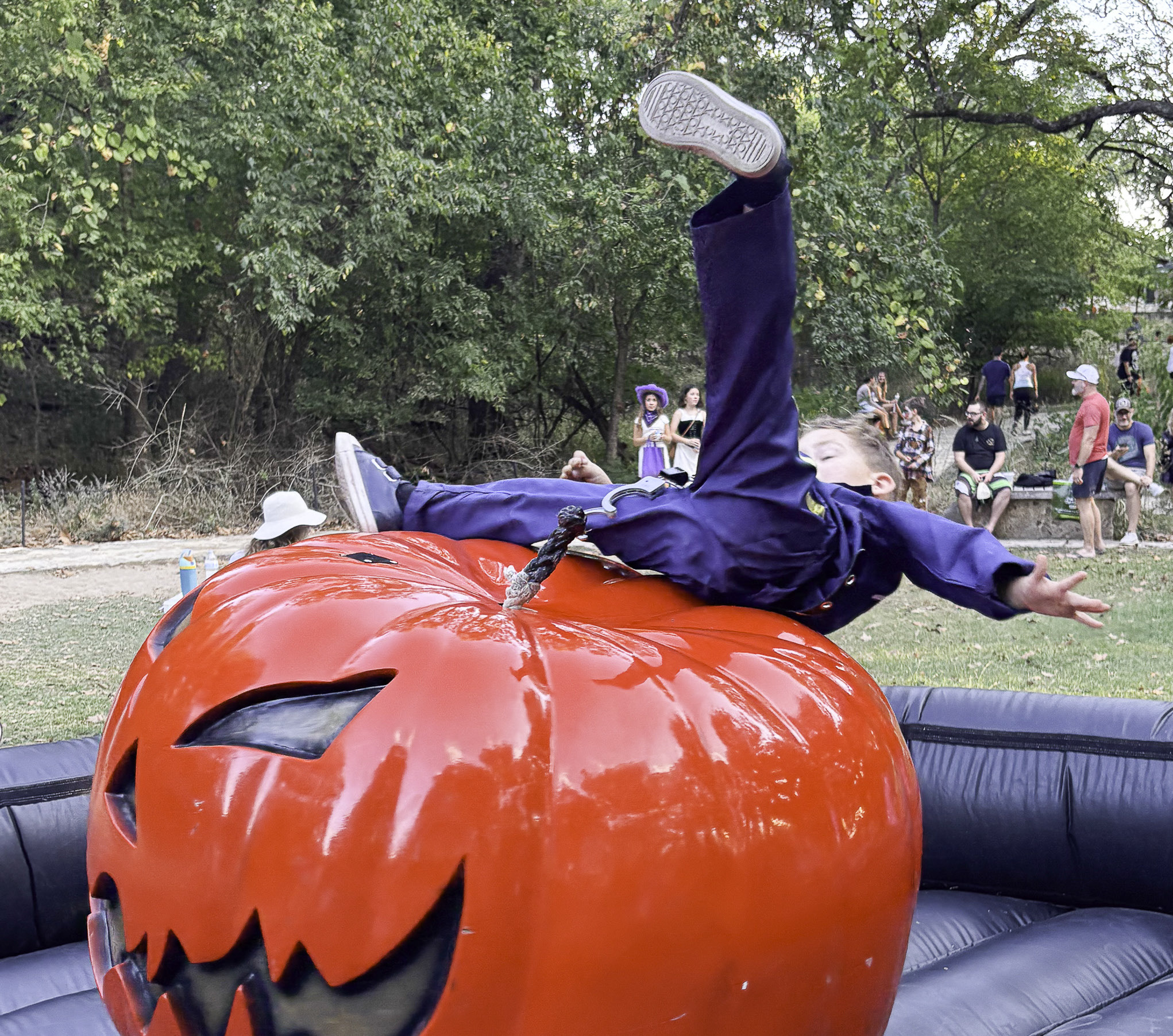 The band, “Kelany and The All-Nighters,” performed winning sets of halloween- themed hits as kids navigated the Haunted Trail, played tag in a hay bale maze, tested their mettle on a mechanical pumpkin, and vied for trophies in a lively costume contest.