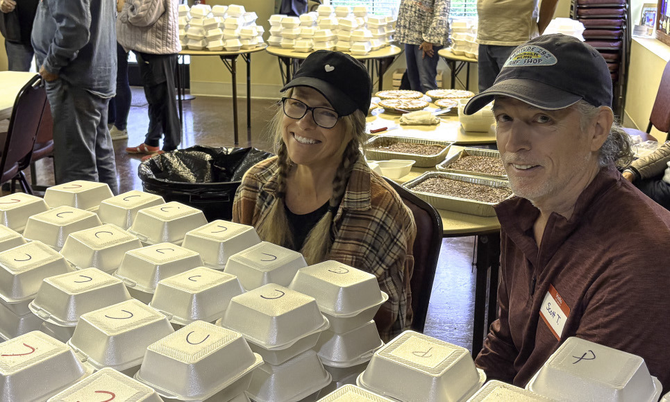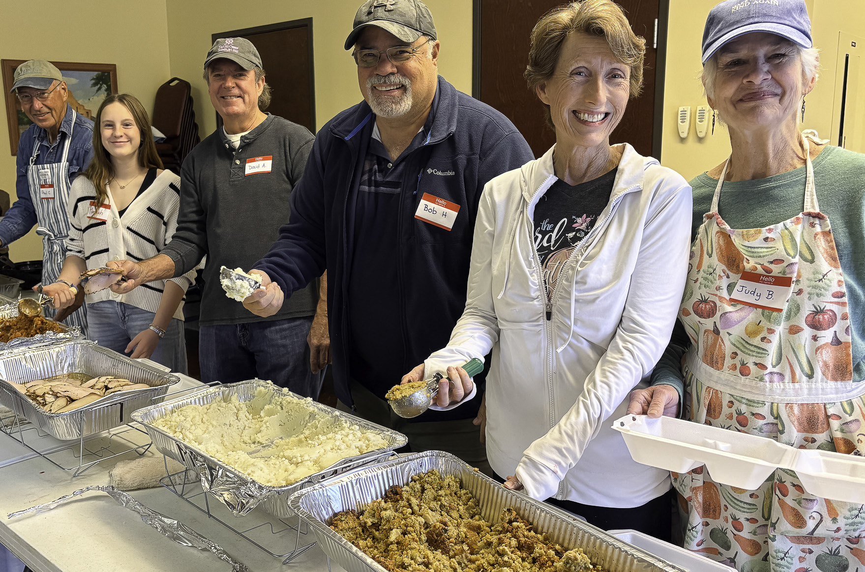 Altogether, volunteers served 1100 meals, 150 more than they’d planned. Even so, there were leftover pies, cobbler and turkey. The organizers said, “We felt good about that.”