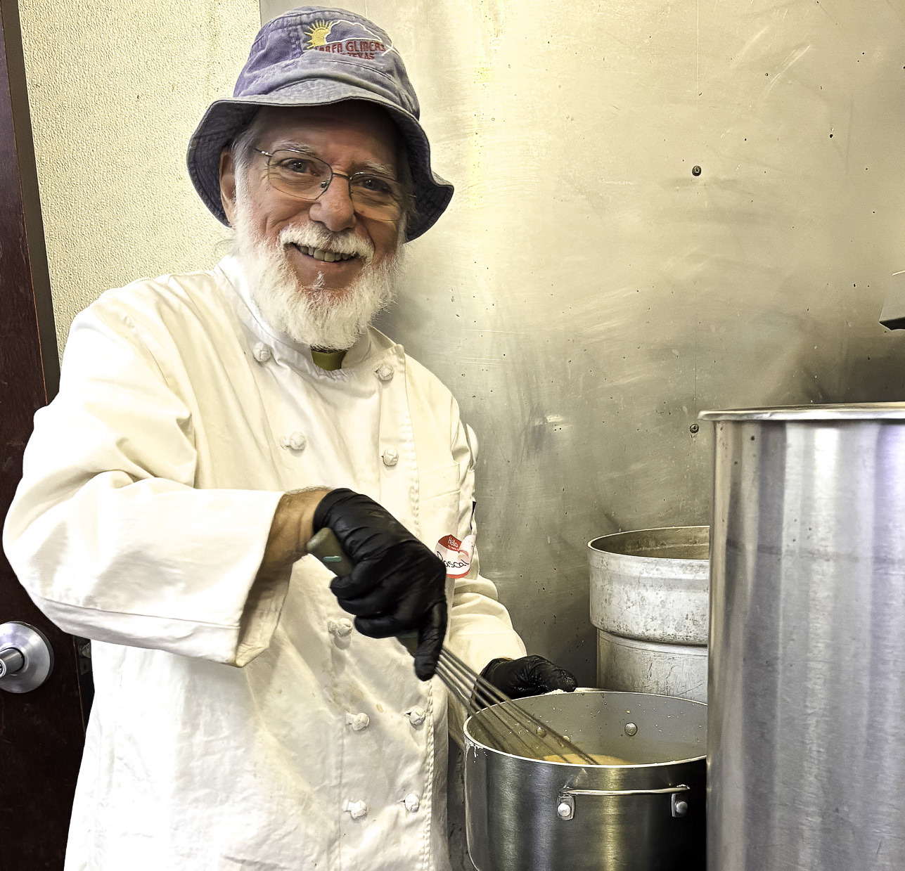 As the kitchen crew prepared mountains of sweet potatoes, stuffing, mashed potatoes, green bean casseroles and gravies, first shift volunteers arrived, bursting with good will and excitement. Aprons and gloves were donned, pies and cobblers were sliced, glasses of water filled, dinners were packed up to go, and drivers lined up waiting for the addresses they’d need to deliver dinners to people who could not attend.